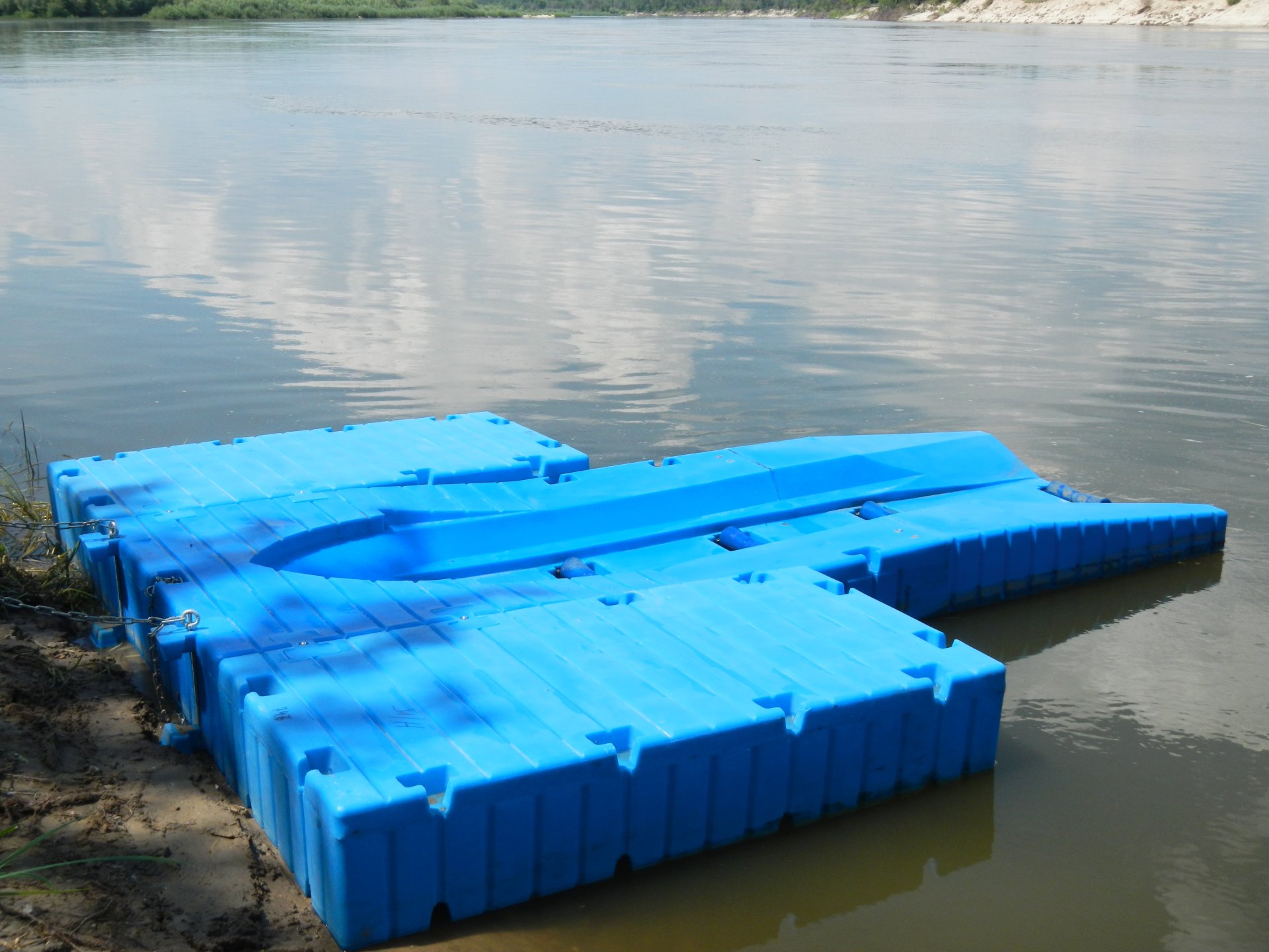 Оборудовать стоянку для двух гидроциклов на берегу водохранилища. Требовался удобный спуск техники на воду без использования крана или трейлера, защита корпуса гидроцикла от повреждений при хранении на воде, безопасный подход персонала.