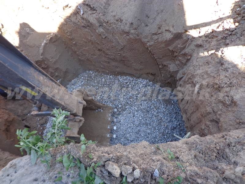 - Устройство фильтрационного поля: котлован, песчаная подушка, щебеночный слой
