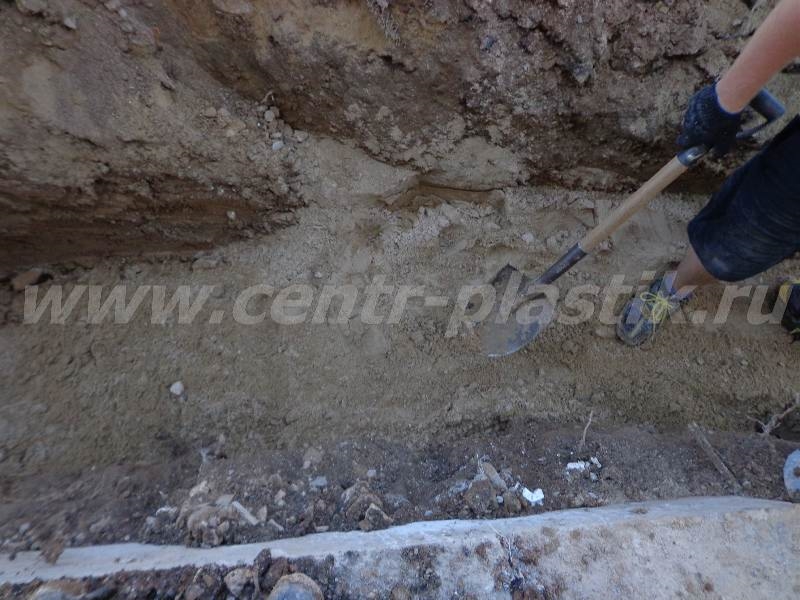 - Прокладка трубы от септика до фильтрационного колодца