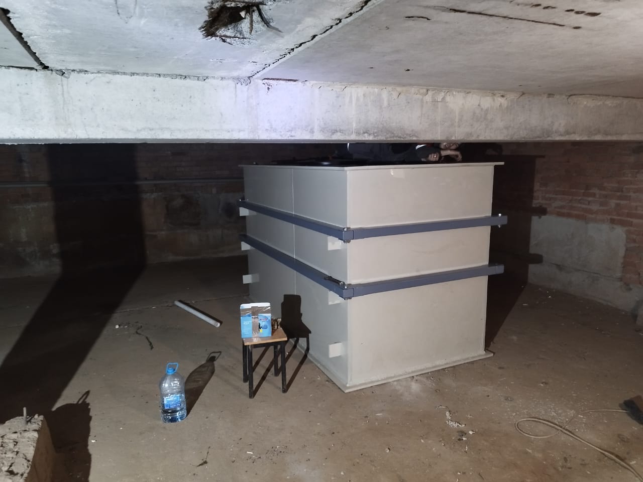 Металлические ёмкости ГВС проржавели — жители получали воду с ржавчиной и перебоями. Заменили на PP-ёмкость 5 м³ в металлокаркасе: горячая вода до 95 °C, стабильная подача.