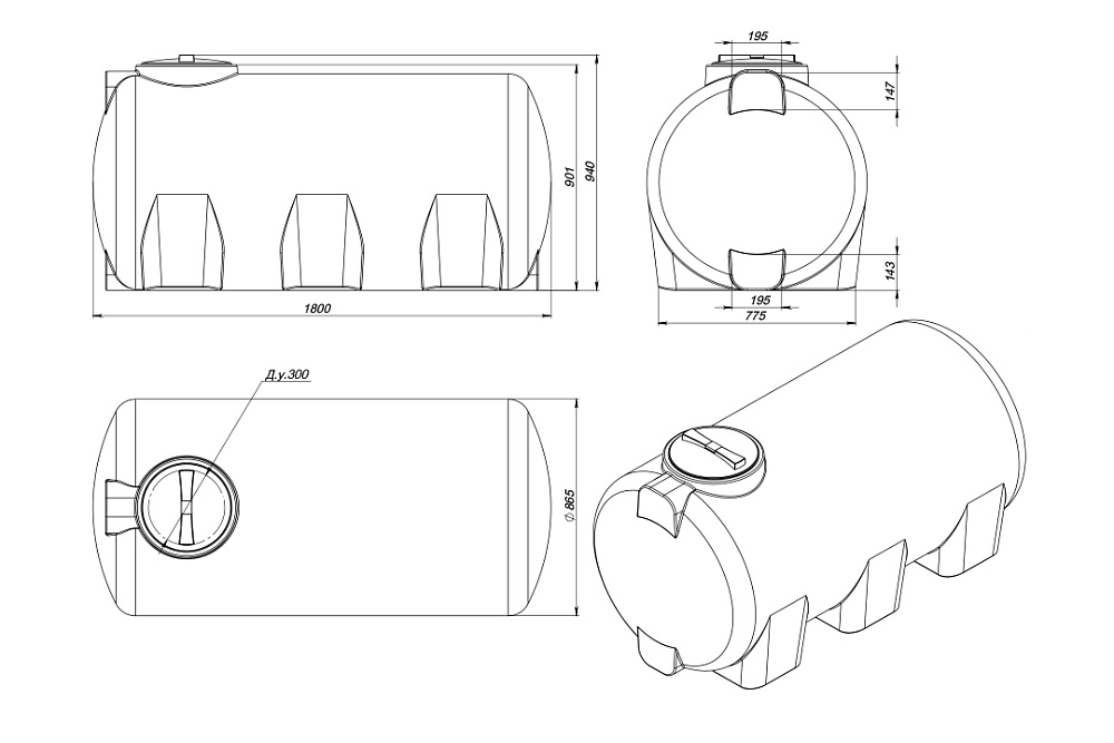 Форма/назначение Для воды Объем (л) 1000 Длина 1800 Ширина 865 Высота (мм) 940 Диаметр горловины (мм) 300 Тип крышки С дыхательным клапаном Форма Горизонтальная цилиндрическая ?ГОСТ / ТУНормативный документ изготовленияТУ производителя ?Марка материалаМарка сырья (LLDPE, PE-100 и т.д.)LLDPE (Линейный полиэтилен низкой плотности) ?Температурный диапазонРабочие температуры эксплуатации-30°C ... +60°C ?Срок службы (лет)Расчетный срок службы изделия25 ?Химическая стойкостьУстойчивость к веществам (вода, топливо, кислоты)Вода, дизельное топливо, масла, слабые кислоты и щелочи Как заказатьНужен точный расчёт? Воспользуйтесь инженерным калькулятором