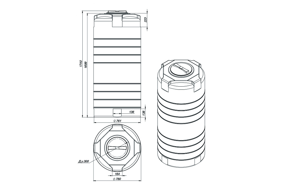 Параметр Эта емкость (Стандарт) Сварка по месту (Центр Пластика) Габариты Фиксированные (может не пройти в дверь) Любые (под ваш проем) Форма Цилиндр / Прямоугольник (стандарт) По форме помещения (углы, ниши) Патрубки Только в штатных местах В любой точке (дно, крышка, бок) Цена + Дешевле (Серийное производство) $$ Дороже на 30-40% (Ручная работа) Вердикт Для улицы и свободных помещений Для готовых помещений с узкими проемами Высота емкости указана без крышки.