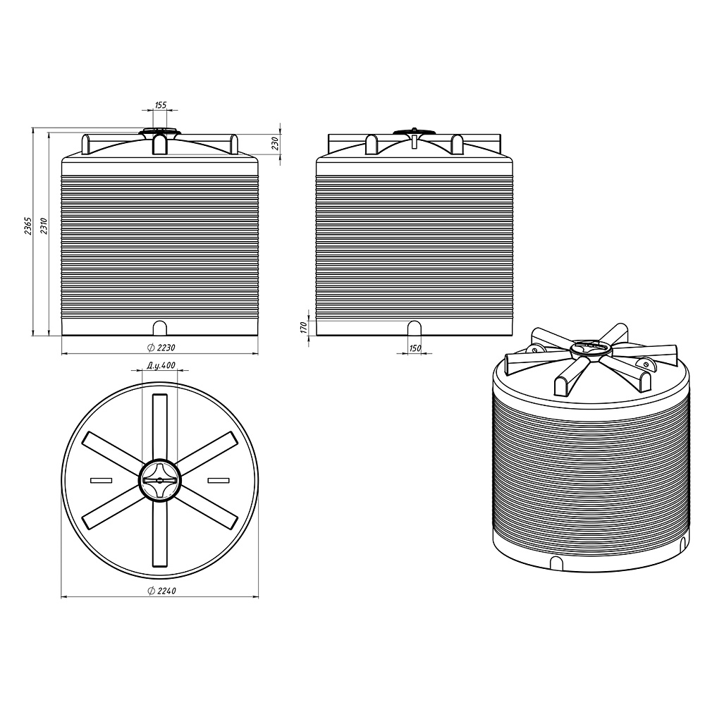 Форма/назначение Для воды Объем (л) 750 Диаметр (мм) 1015 Длина 1015 Ширина 1015 Высота (мм) 1225 Диаметр горловины (мм) 300 Тип крышки С дыхательным клапаном Форма Цилиндрическая Материал Полиэтилен ?ГОСТ / ТУНормативный документ изготовленияТУ производителя ?Марка материалаМарка сырья (LLDPE, PE-100 и т.д.)Пищевой полиэтилен ?Температурный диапазонРабочие температуры эксплуатации-30°C ... +60°C ?Срок службы (лет)Расчетный срок службы изделия25 ?Химическая стойкостьУстойчивость к веществам (вода, топливо, кислоты)Вода, дизельное топливо, масла, слабые кислоты Как заказатьНужен точный расчёт? Воспользуйтесь инженерным калькулятором