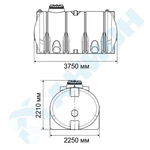 Пластиковый бак МН11000_2РК2_Пр объемом 11000 литров предназначена для стационарного хранения различных жидкостей с плотностью до 1.2 г/см, слабоагрессивных жидкостей (по согласованию), питьевой воды и пищевых жидких продуктов.