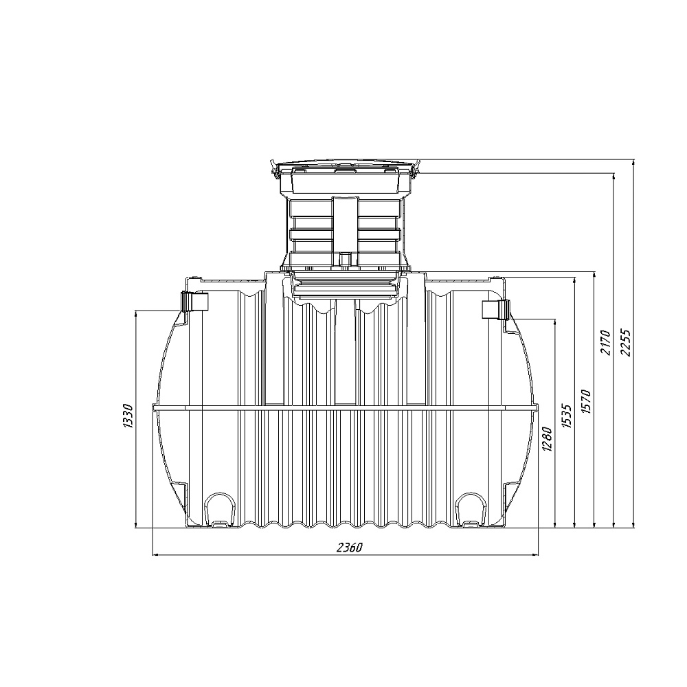 Корпус емкости выполнен в цилиндрической форме. Габаритный объем составляет 3,5 м³. На корпусе предусмотрены патрубки для подключения к системе ГВС, а также горловина для обслуживания. Конструкция включает в себя ребра жесткости для повышения прочности и устойчивости к нагрузкам. Емкость комплектуется крышкой. Монтаж осуществляется на подготовленную площадку.