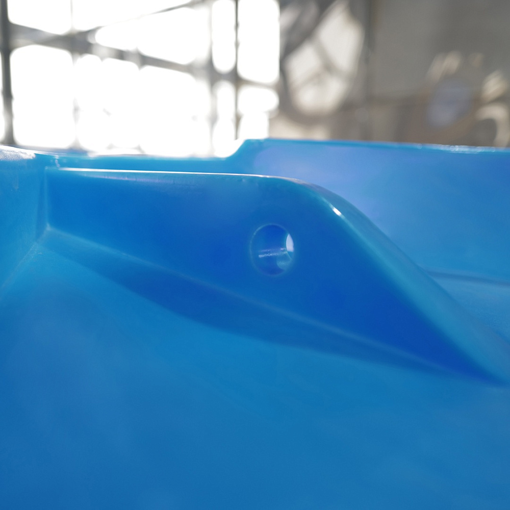 Изделие выполнено методом ротационного формования из первичного пищевого полиэтилена (PE), обеспечивающего химическую нейтральность и устойчивость к ультрафиолетовому излучению. Конструкция корпуса – цельнолитая, без швов, что гарантирует герметичность. Предусмотрены площадки для установки дополнительного оборудования и "серьги" для перемещения краном.