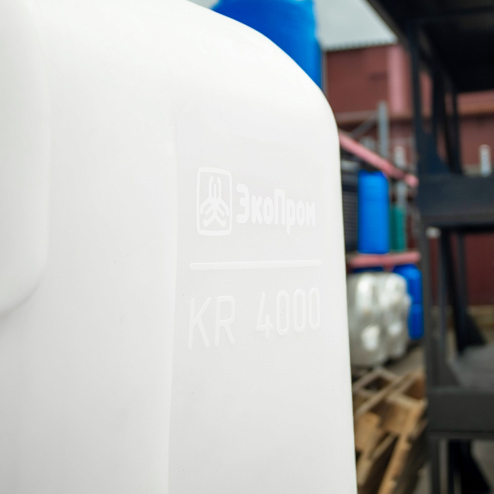 Емкость КR 4000 изготовлена их пищевого полиэтилена методом ротационного формования. Такой способ производства гарантирует отсутствие швов и стыков в емкости, что безусловно обеспечивается ее герметичность и надежность. Полиэтилен белого цвета, что отлично позволяет визуально отслеживать уровень жидкости внутри емкости.