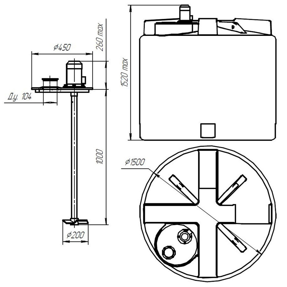 Емкость T 2000 литров с турбинной мешалкой