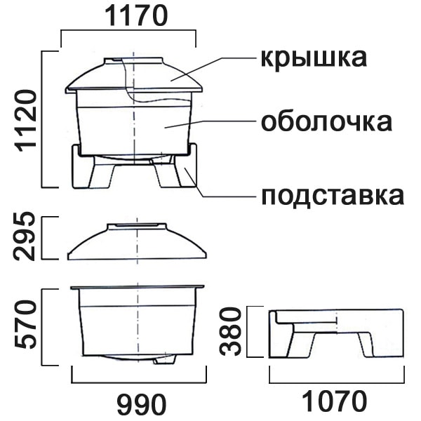 Форма/назначение Цилиндрические Объем (л) 390 Диаметр (мм) 1170 Длина 1170 Ширина 1170 Высота (мм) 1120 Диаметр горловины (мм) 970 Тип крышки Накидная крышка ?ГОСТ / ТУНормативный документ изготовленияТУ производителя ?Марка материалаМарка сырья (LLDPE, PE-100 и т.д.)LLDPE (Линейный полиэтилен низкой плотности) ?Температурный диапазонРабочие температуры эксплуатации-30°C ... +60°C ?Срок службы (лет)Расчетный срок службы изделия25 ?Химическая стойкостьУстойчивость к веществам (вода, топливо, кислоты)Вода, дизель, масла, слабые кислоты Как заказатьНужен точный расчёт? Воспользуйтесь инженерным калькулятором