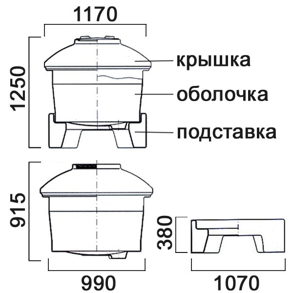 Пластмассовые баки выпускаются с установленной крышкой Д385 мм с дыхательным клапаном.