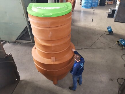 Корпус КНС изготовлен из первичного полипропилена (ПП) методом спиральной навивки. Материал устойчив к воздействию ультрафиолетового излучения, агрессивных сред и перепадам температур в диапазоне от -40 °C до +60 °C. Срок службы изделия составляет не менее 50 лет при соблюдении условий эксплуатации. Полипропилен является экологически безопасным материалом, не вступающим в реакцию со сточными водами.