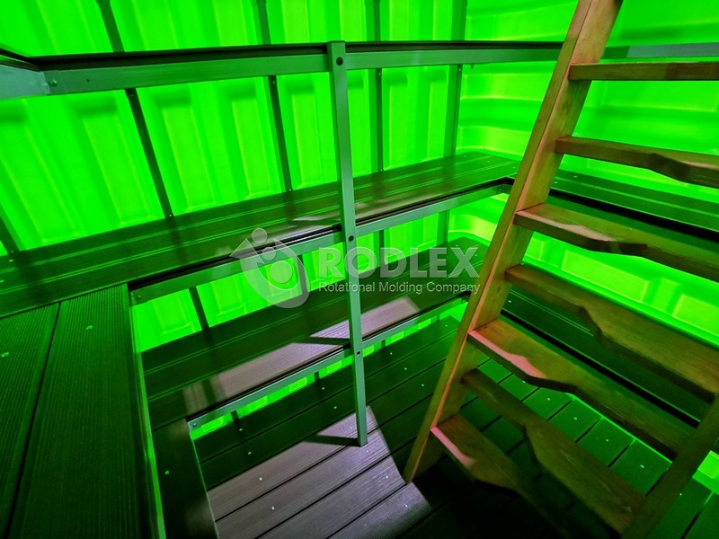 Пластиковый погреб TORTILA 2.0 серия Modern предназначен для круглогодичного хранения продуктов питания, овощей, солений и хозяйственных запасов. Цельнолитой корпус изготовлен методом ротационного формования — бесшовная монолитная конструкция без сварных швов, обеспечивающая полную герметичность даже при высоком уровне грунтовых вод.