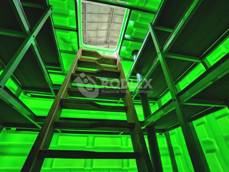 Корпус выполнен из первичного пищевого полиэтилена LLDPE, допущенного к контакту с пищевыми продуктами. Интегрированные рёбра жёсткости обеспечивают высокую кольцевую жёсткость и устойчивость к сдавливанию грунтом. Усиленное дно с пригрузочной юбкой предотвращает всплытие при подъёме грунтовых вод.