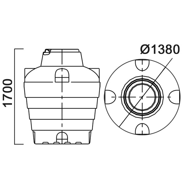 Корпус септика С1700 имеет цилиндрическую форму с общим объемом 1.7 м³. Конструкция включает в себя горловину для обслуживания, расположенную в верхней части, и патрубки для подсоединения входной и выходной канализационных труб. На корпусе предусмотрены ребра жесткости, увеличивающие прочность изделия. Монтаж осуществляется путем заглубления в грунт с последующей обратной засыпкой.