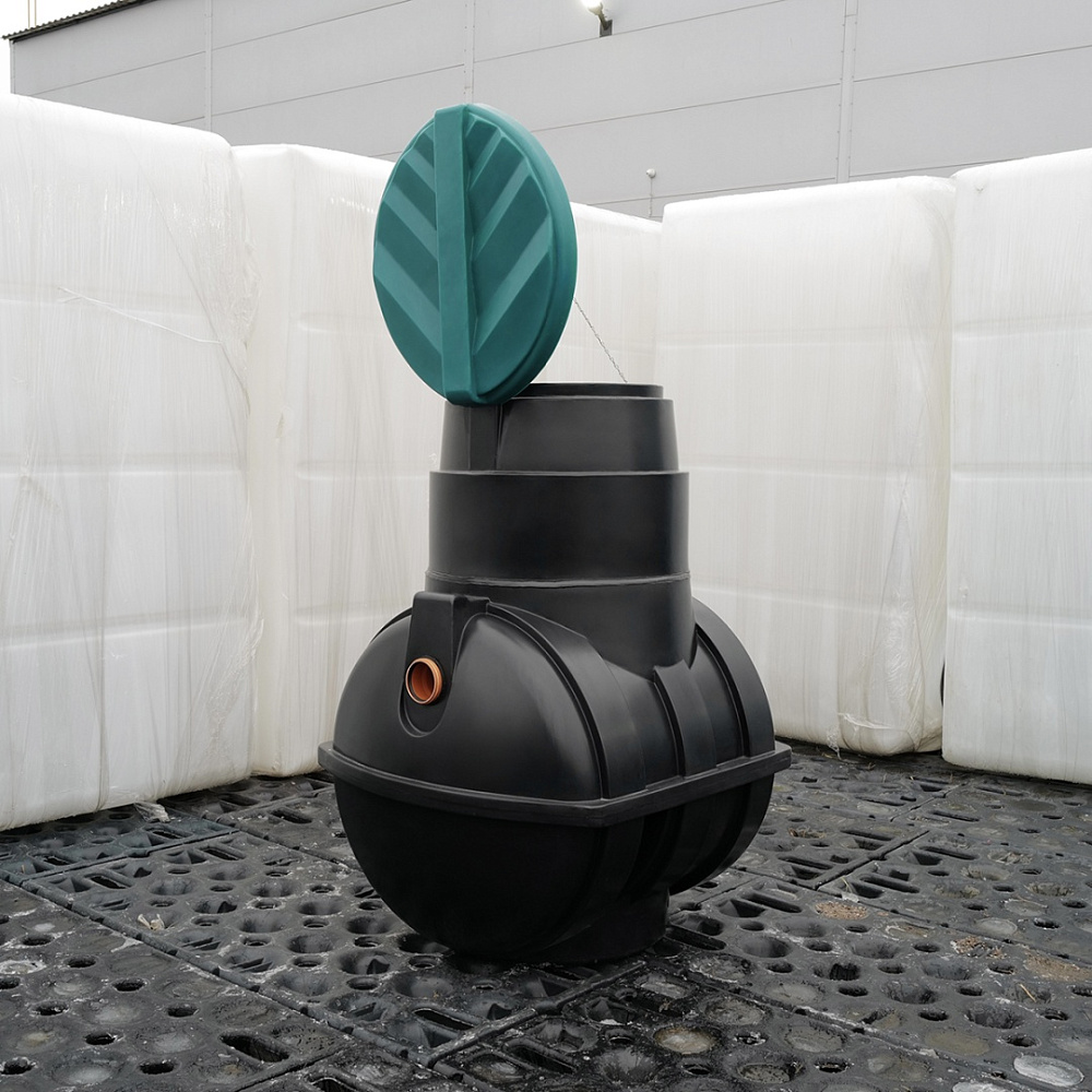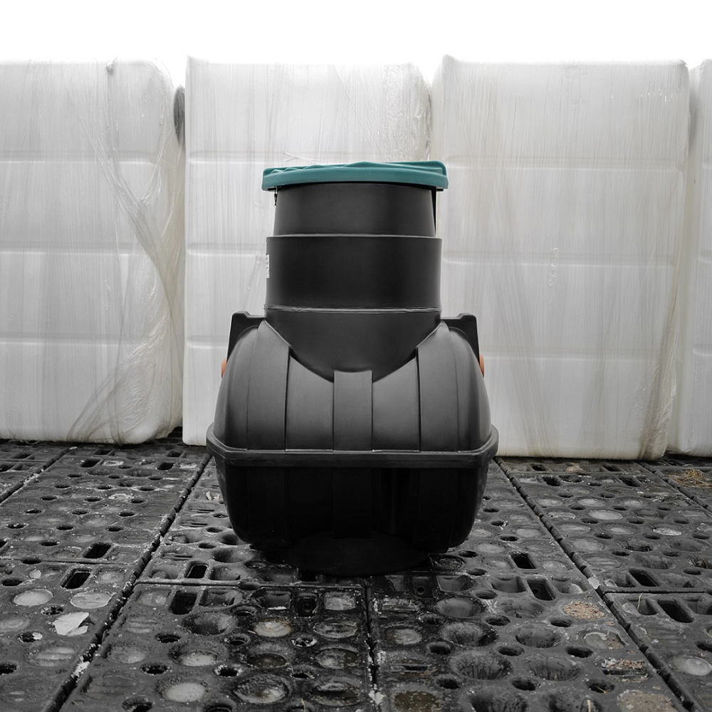Корпус септика изготовлен методом ротационного формования из линейного полиэтилена (PE) без сварных швов, обеспечивая полную герметичность. Конструкция включает ребра жесткости для повышения прочности. Форма корпуса оптимизирована для удобства транспортировки и монтажа. Патент №136036.