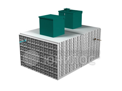 Корпус станции прямоугольной формы, выполнен методом экструзионной сварки из листового полипропилена. Габаритные размеры определяются производительностью 100 м³ сточных вод в сутки. Конструкция включает в себя несколько технологических камер, соединенных между собой. На верхней плоскости расположены сервисные крышки для доступа к внутренним элементам. Предусмотрены патрубки для подвода и отвода стоков. Монтаж осуществляется путем заглубления в грунт с последующей обратной засыпкой.