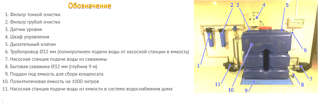 Накопительная емкость изготавливается из пищевого полиэтилена, обеспечивающего безопасность хранения питьевой воды. Трубопроводы и запорная арматура выполняются из пластика, устойчивого к коррозии и воздействию воды. Шкаф управления изготовлен из металла с антикоррозийным покрытием. Датчики уровня выполнены из нержавеющей стали.Эксплуатация: