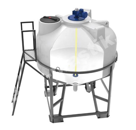 Емкость ЦКТ 3000 с турбинной мешалкой с патрубком в обрешетке с лестницей