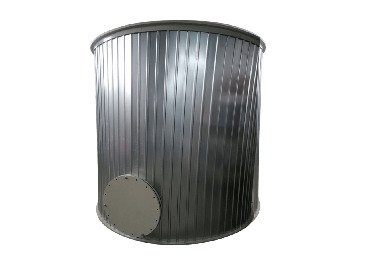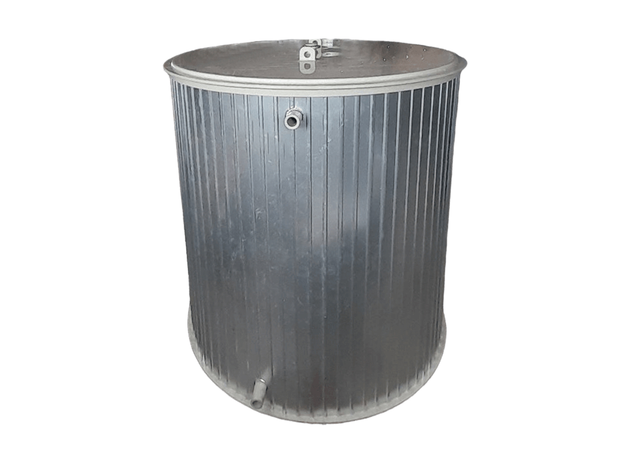 Вертикально-цилиндрическая пластиковая емкость для горячей воды (ГВС), с температурой заливаемой жидкости до 100 °С. Емкость выполнена из листового пищевого химически стойкого полипропилена методом ручной и машинной экструзионной сварки. Толщина стенок 10 мм, толщина днища и верха 20 мм. В емкости имеются боковая фланцевая крышка Ø 400 мм и дополнительные врезки. Утепление емкости фольгированным изофолом 30 мм, облицовка оцинкованным профнастилом С-10.